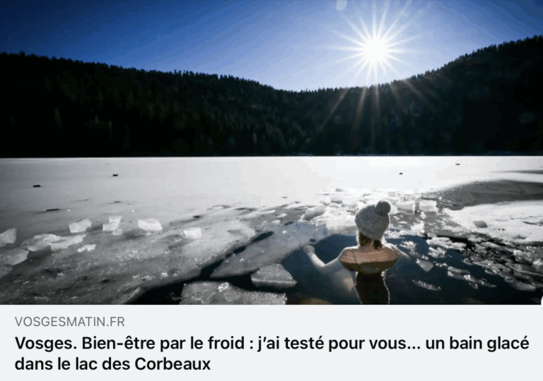 A découvrir ci-dessous un article de presse sur l’expérience de bain glacé en milieu naturel (Vosges Matin 2024).