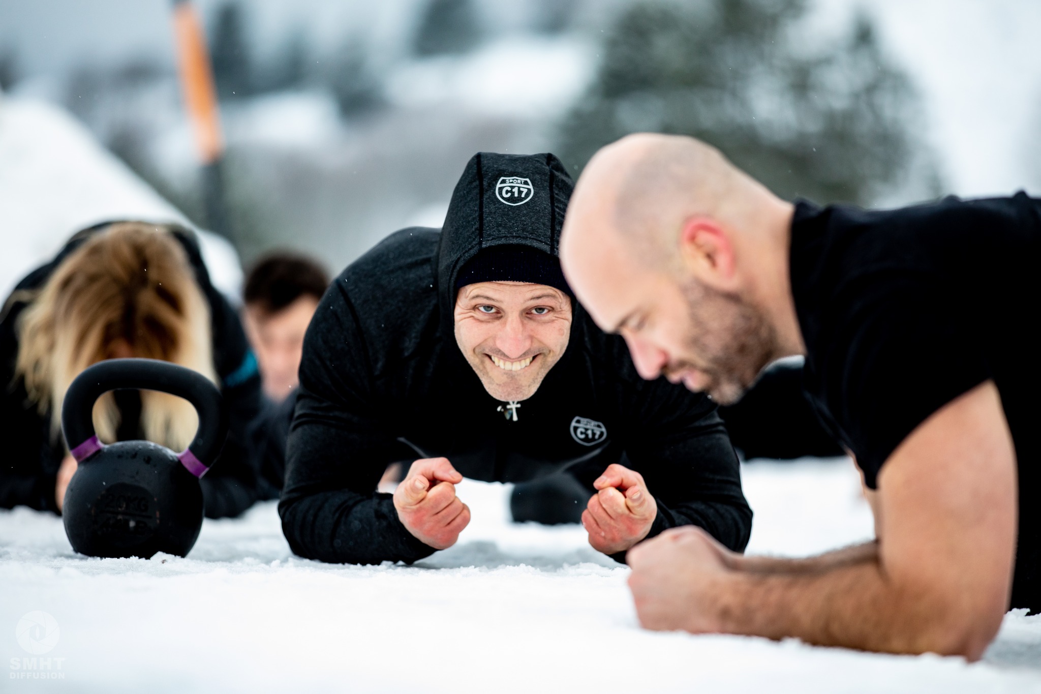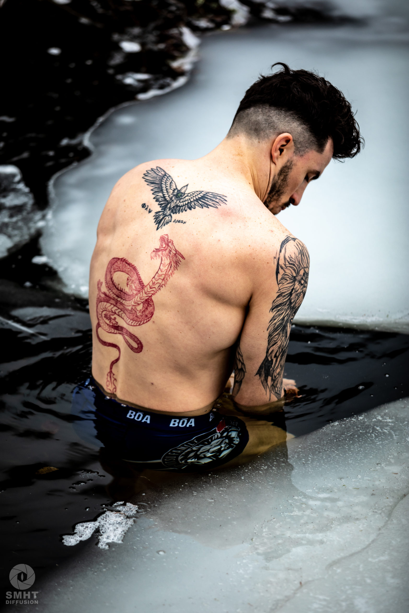 Pierre Manzo lors du bain glacé réalisé pendant le stage ANTIFRAGILE en février 2023